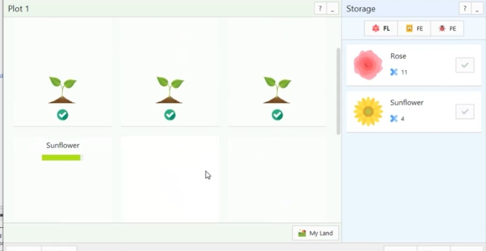 1. Dynamic Flower Growth: Players can plant seeds, water them, and watch the flowers grow over time. Each flower has unique characteristics like growth speed, color, and size, which are controlled through object-oriented programming principles.