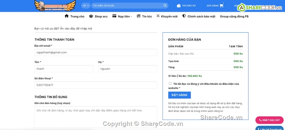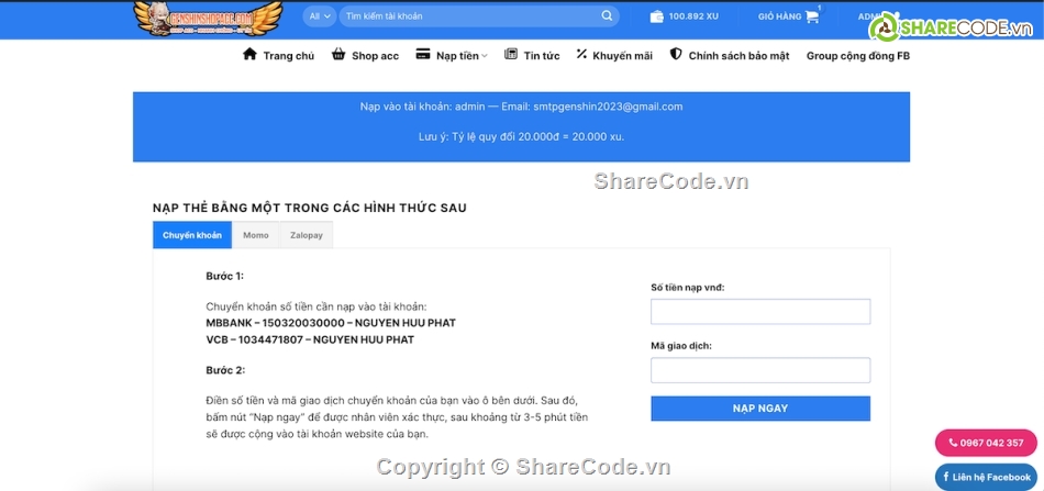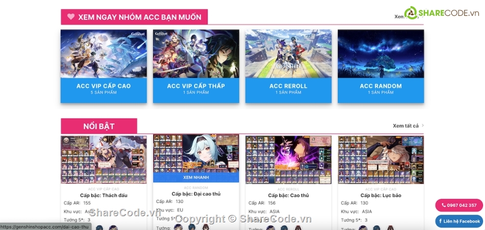Web code to sell accounts Game Genshin Impact + League of Legends